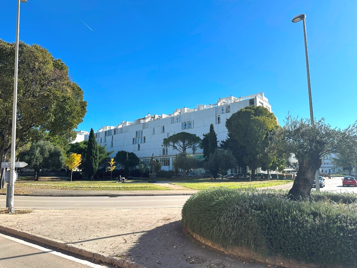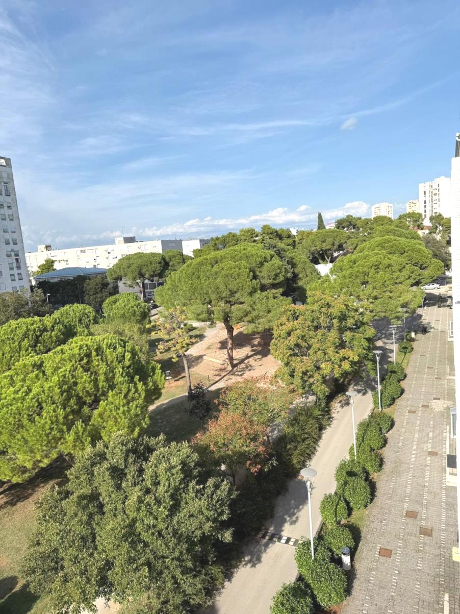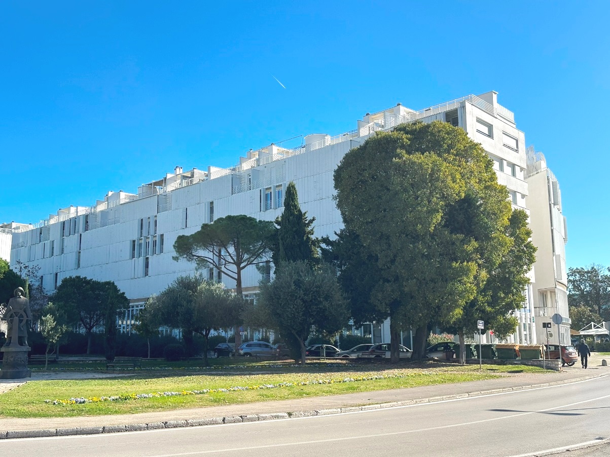 Stan se nalazi u stambeno poslovnom kompleksu TIZ, u zgradi koja je izgrađena 2004.godine prema projektu renomiranog i nagrađivnog arhitekta Nikole Bašića (morske orgulje), na višem je katu (lift) te ima otvoren pogled na more, most, bedeme grada te prekrasan zalazak sunca. Stanovanje u ovom objektu nudi privatnost, samo dva stana po katu, mirno okruženje, blizinu svih sadržaja potrebnih za kvalitetan boravak.