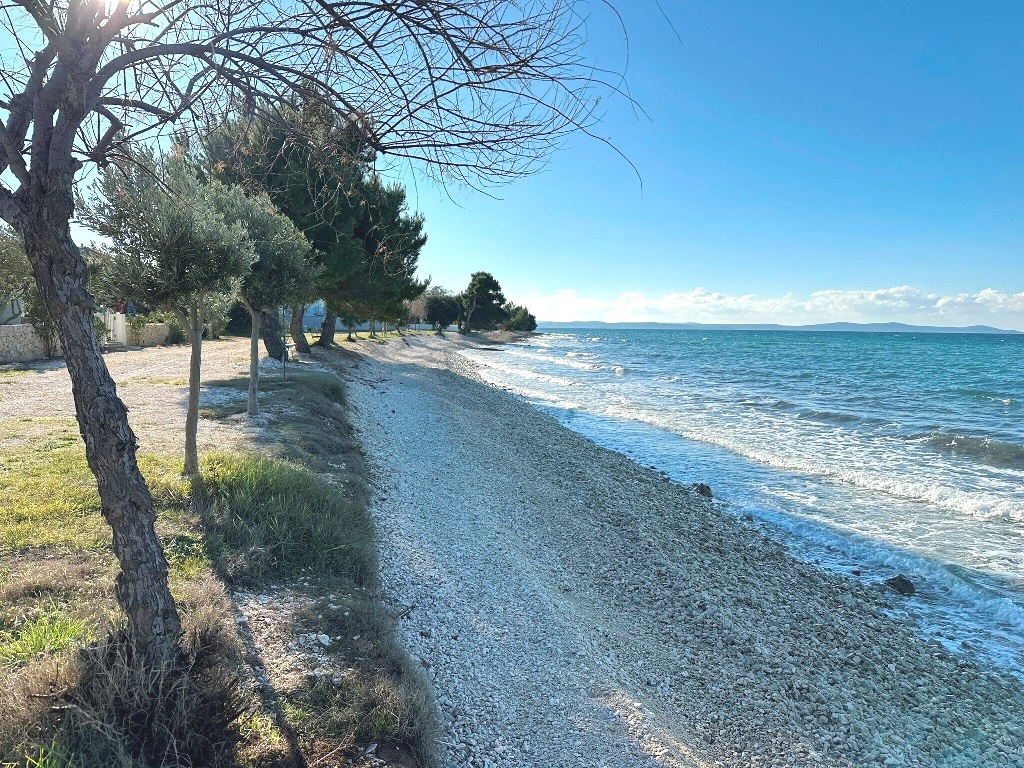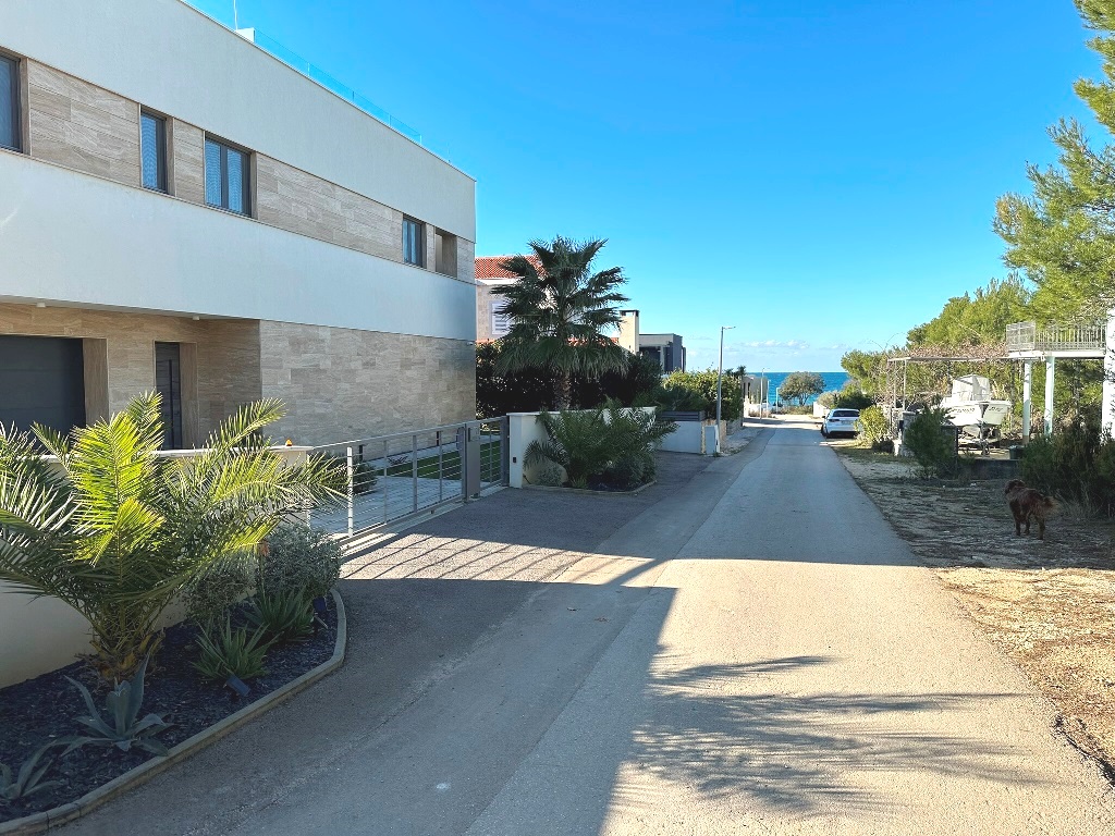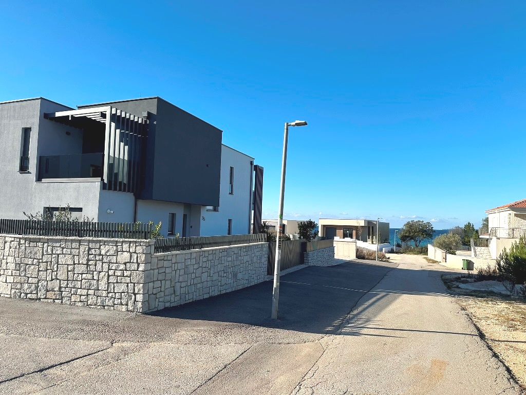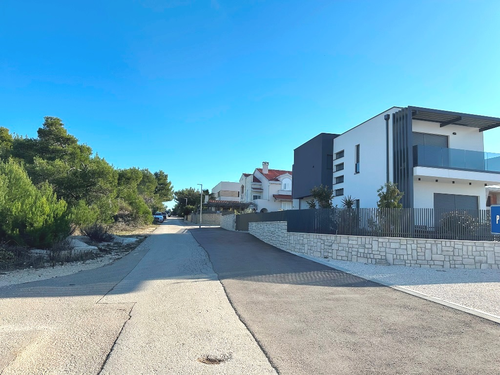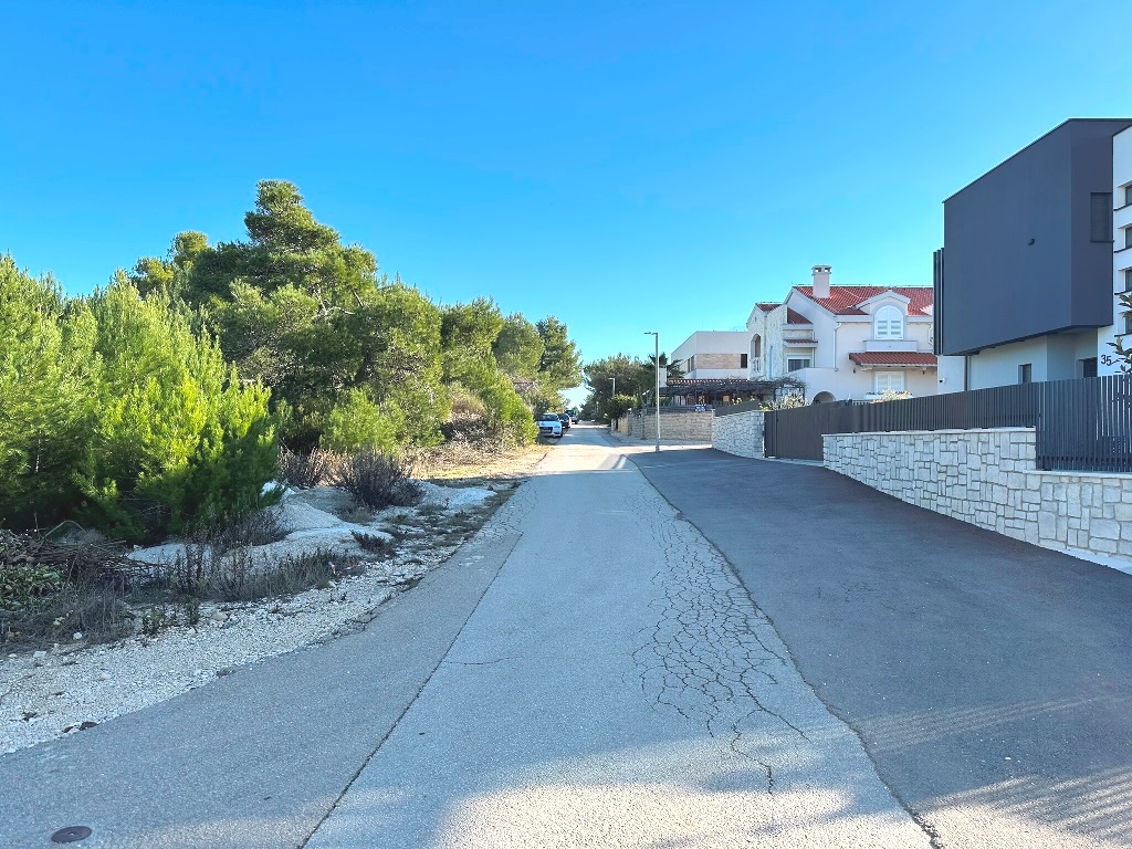 Građevinsko zemljište površine 880m2 je udaljeno 170m od mora. Pravilnog je oblika cca.20m*40m (malo šire u donjem dijelu) sa blagim nagibom. Nalazi se u građevinskoj zoni, izgrađeni dio, rub građevinske zone 6.red od mora i jedan je od rijetkih slobodnih terena (ili na kojima se trenutno gradi) u okruženju. Većinom su izgrađene kuće sa bazenima, vile, za privremeni boravak. Do mora vodi uređeni asfaltni put, infrastruktura uz teren, slijepa ulica (zadnji teren u ulici). Vlasništvo i dokumentacija uredni 1/1, bez tereta.
