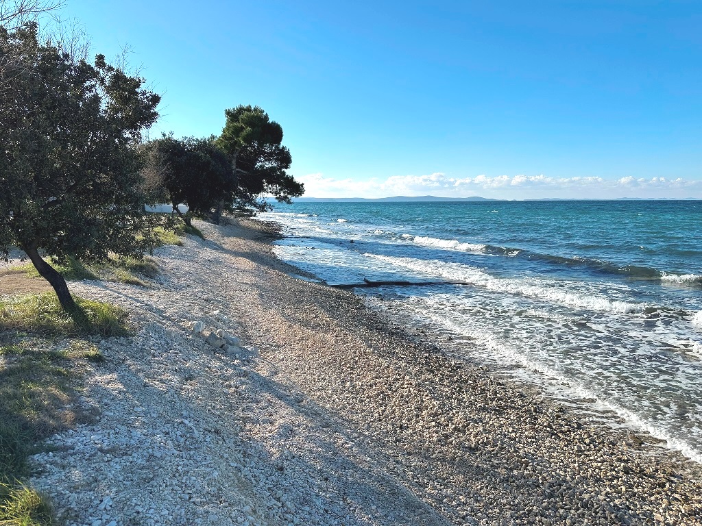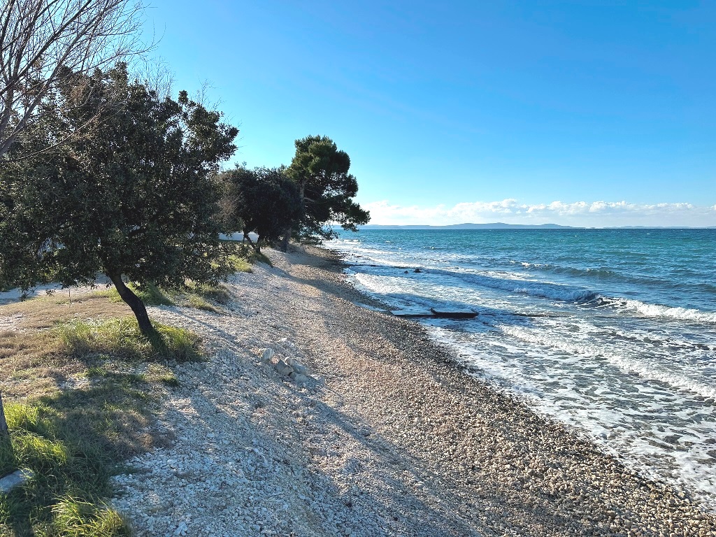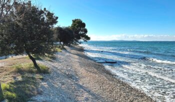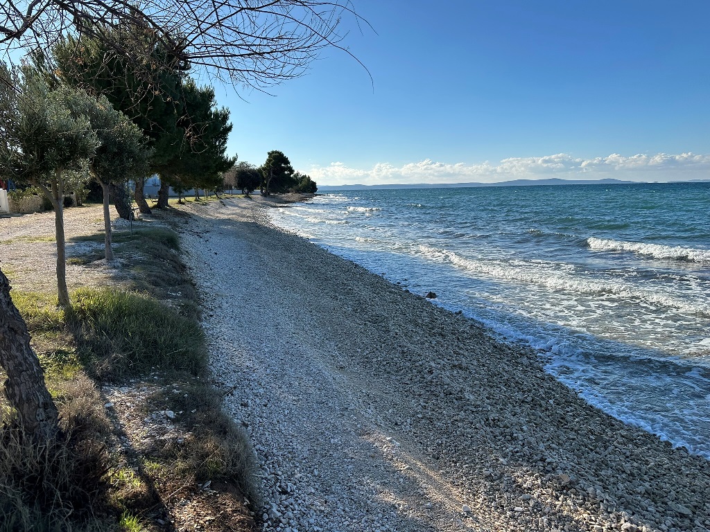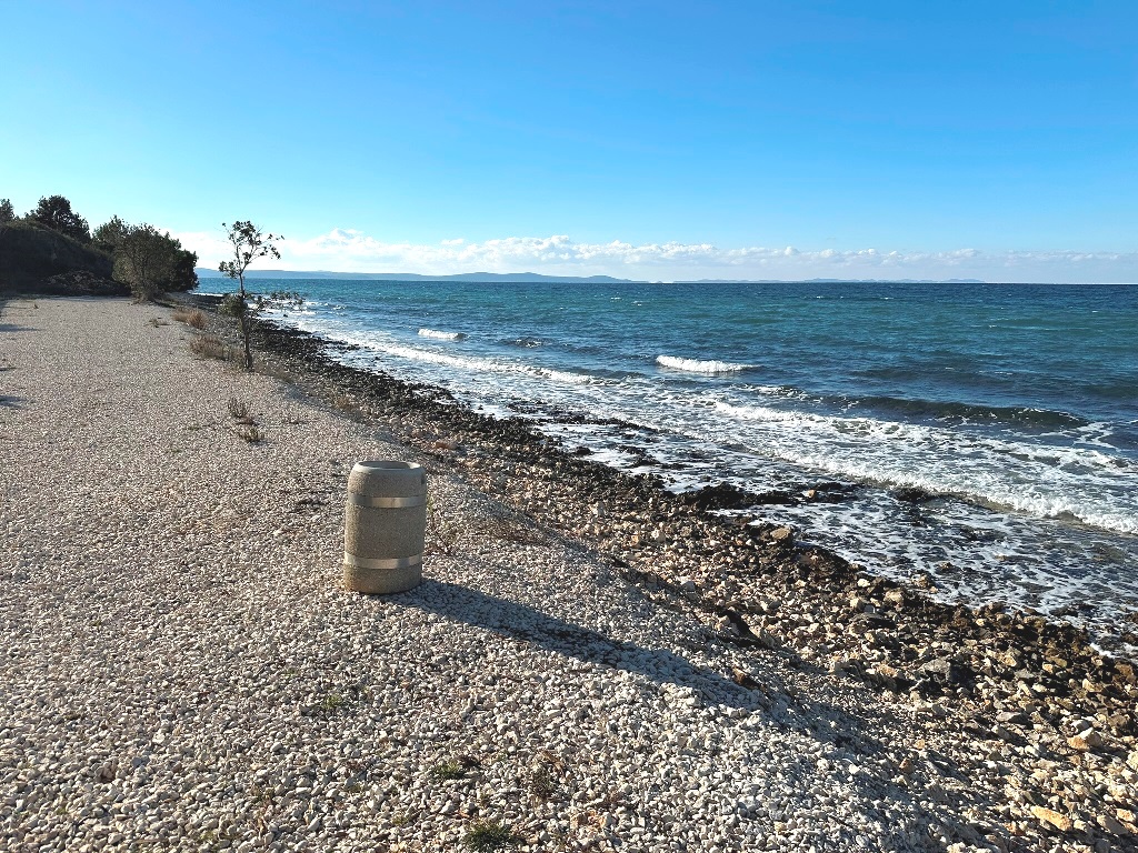 Građevinsko zemljište površine 880m2 je udaljeno 170m od mora. Pravilnog je oblika cca.20m*40m (malo šire u donjem dijelu) sa blagim nagibom. Nalazi se u građevinskoj zoni, izgrađeni dio, rub građevinske zone 6.red od mora i jedan je od rijetkih slobodnih terena (ili na kojima se trenutno gradi) u okruženju. Većinom su izgrađene kuće sa bazenima, vile, za privremeni boravak. Do mora vodi uređeni asfaltni put, infrastruktura uz teren, slijepa ulica (zadnji teren u ulici). Vlasništvo i dokumentacija uredni 1/1, bez tereta.
