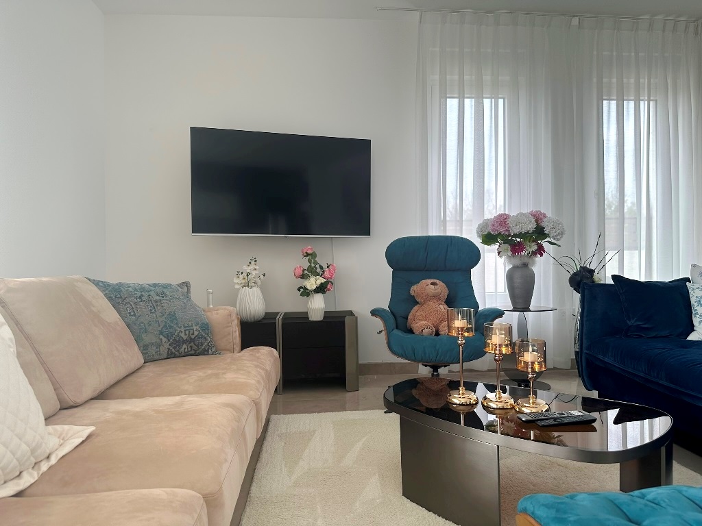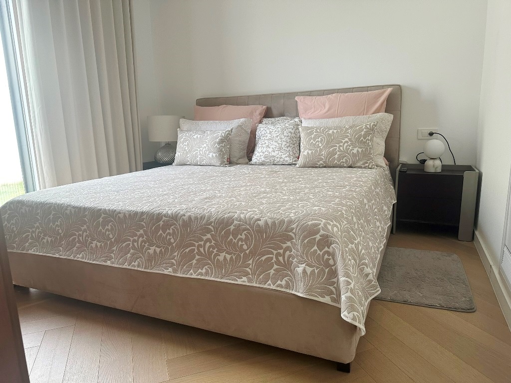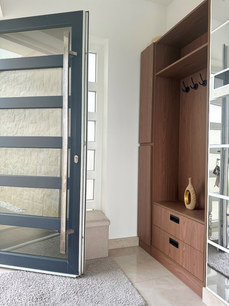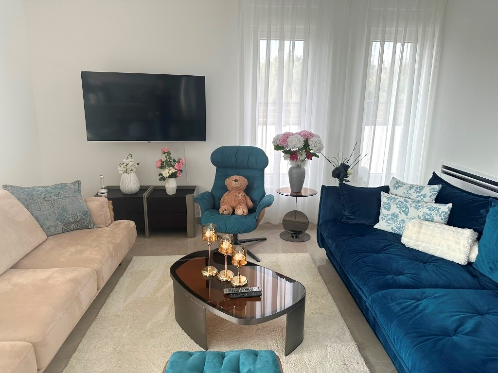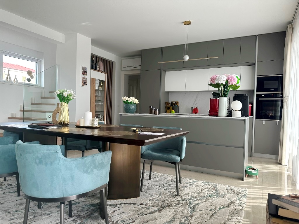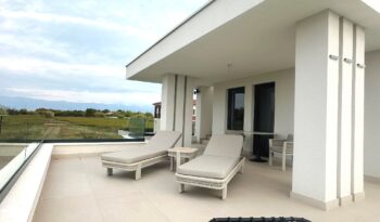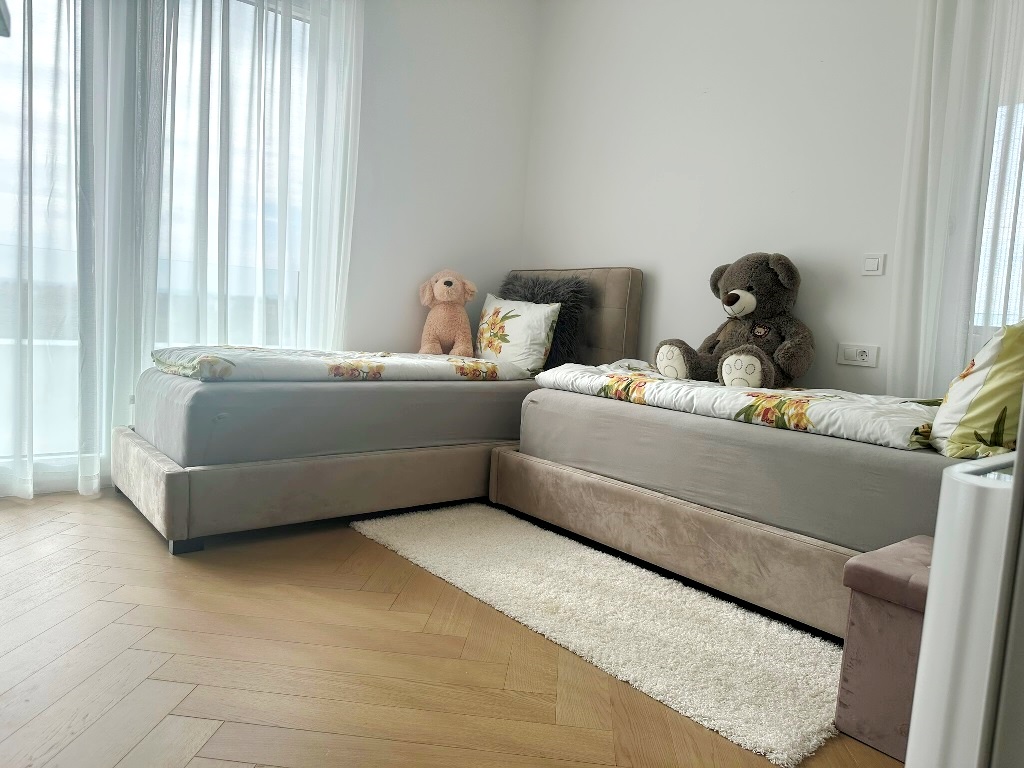 Kuća je u potpunosti namještena kvalitetnim namještajem, rađenim “po mjeri”. Kvalitetno izgrađena prije godinu dana, oprema kuće je na visokom nivou – velikoformatne talijanske pločice 1.klase u prizemlju, hrastov parket postavljen na “riblju kost” u sobama i na katu, sanitarije renomiranih proizvođača, podno grijanje cijele kuće, hlađenje dizalicom topline u svakoj prostoriji.