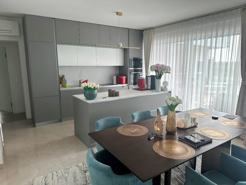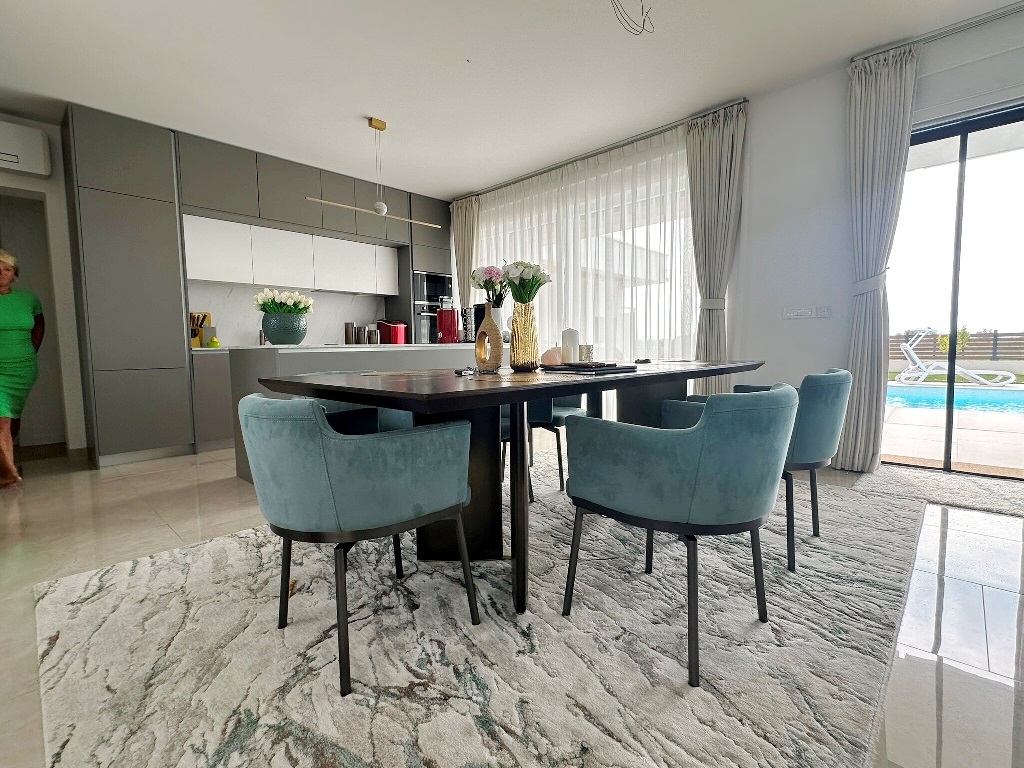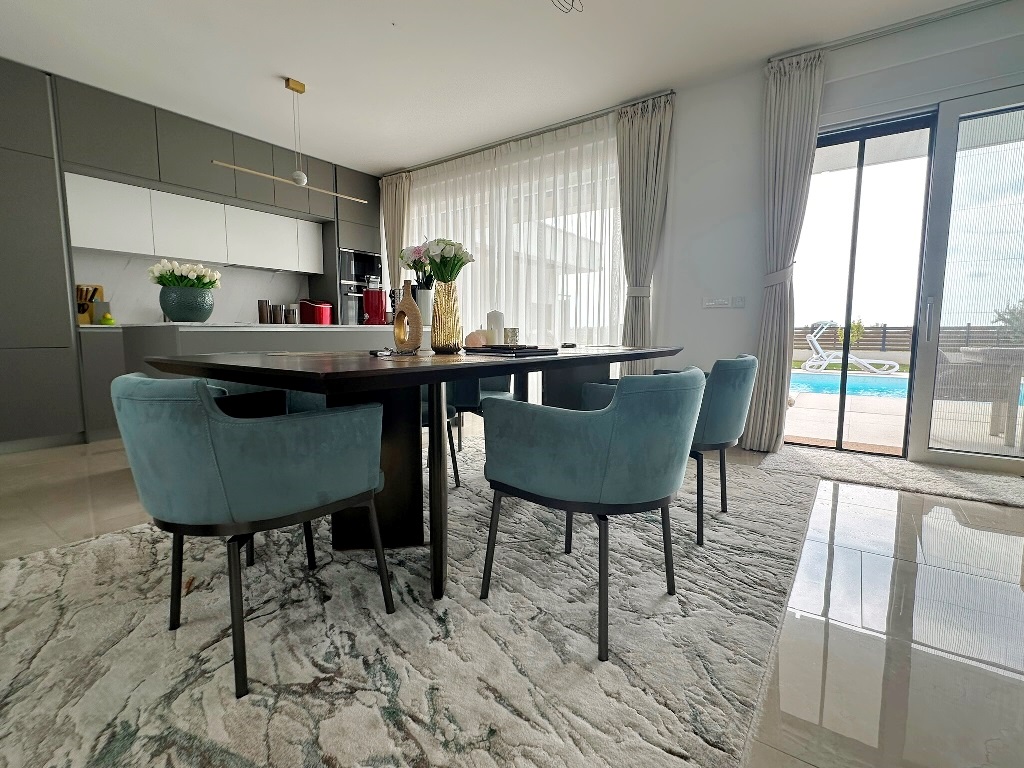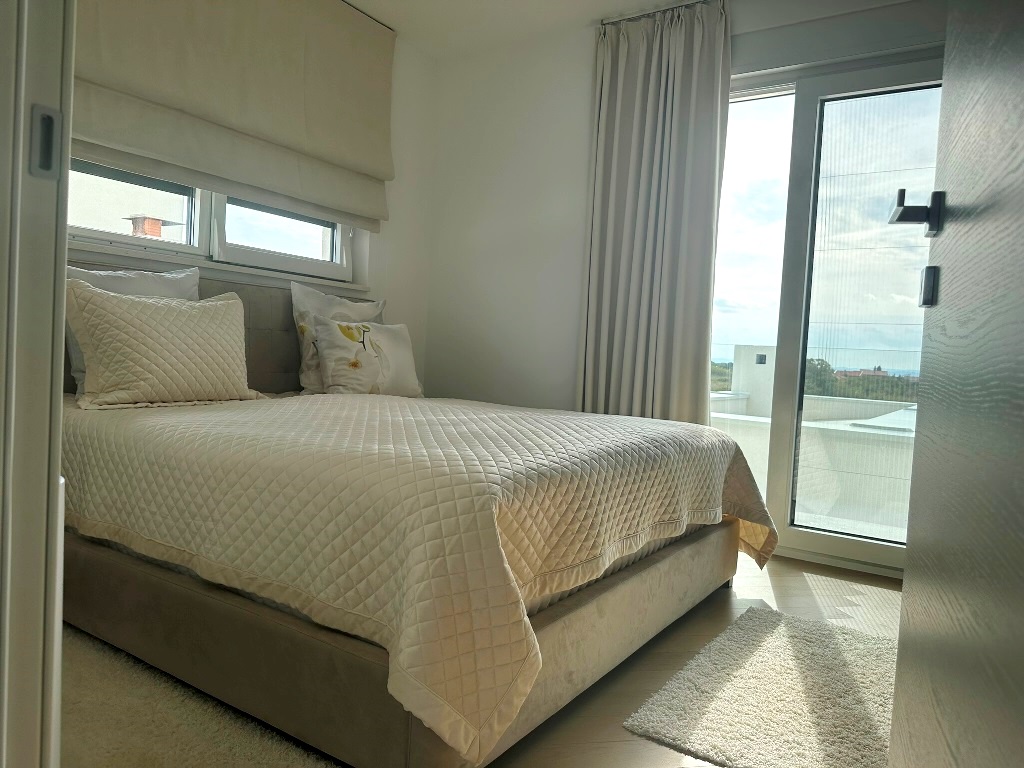 Ova moderna luksuzna kuća sastoji se od prizemlja i kata. U prizemlju se nalazi ulazni prostor iz kojeg se ide u kuhinju sa blagovaonicom i dnevnim boravkom (cijelom dužinom izlaz na dvorište i bazen),  ostatak prizemlja čine jedna spavaća soba, kupaonica sa walk-in tušem te mala praonica rublja. Unutarnje stepenište vodi na kat gdje su dvije spavaće sobe, kupaonica i izlaz da veliku terasu 1.kata. Stepenište vodi i na krovnu terasu gdje je smještena hidromasažna kada (jacuzzi), izvedene instalacije za ljetnu kuhinju i sl. Pogled je panoramski na more!