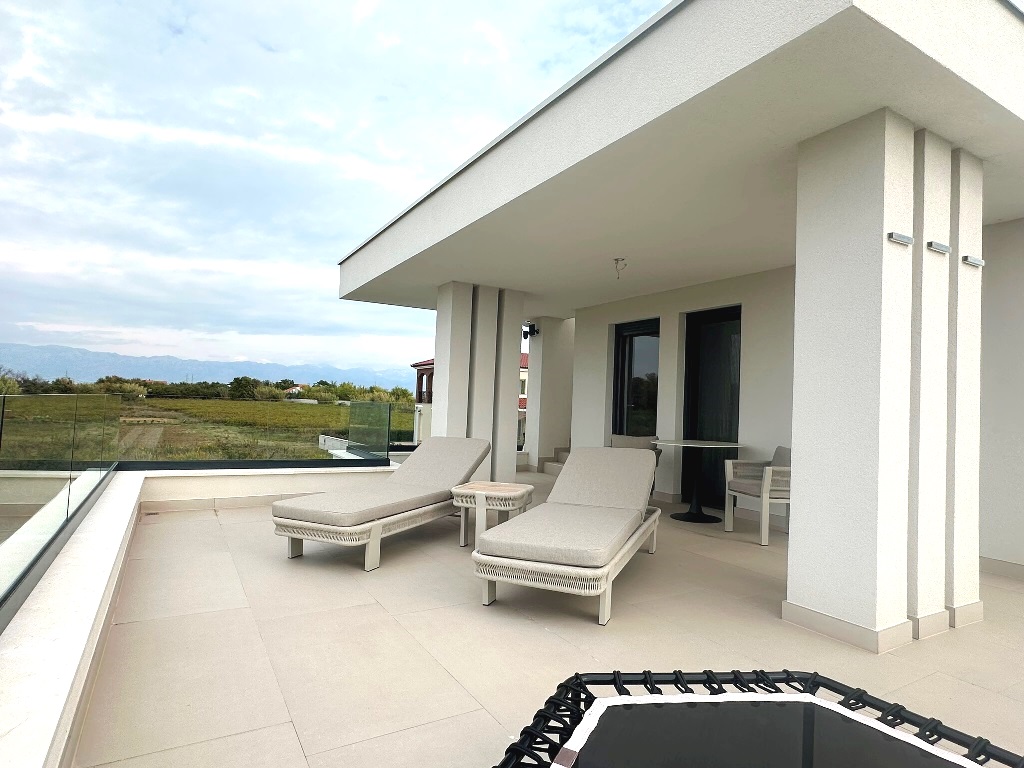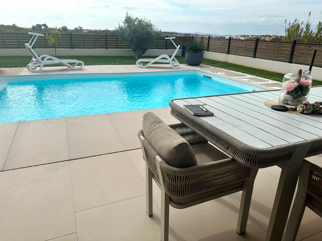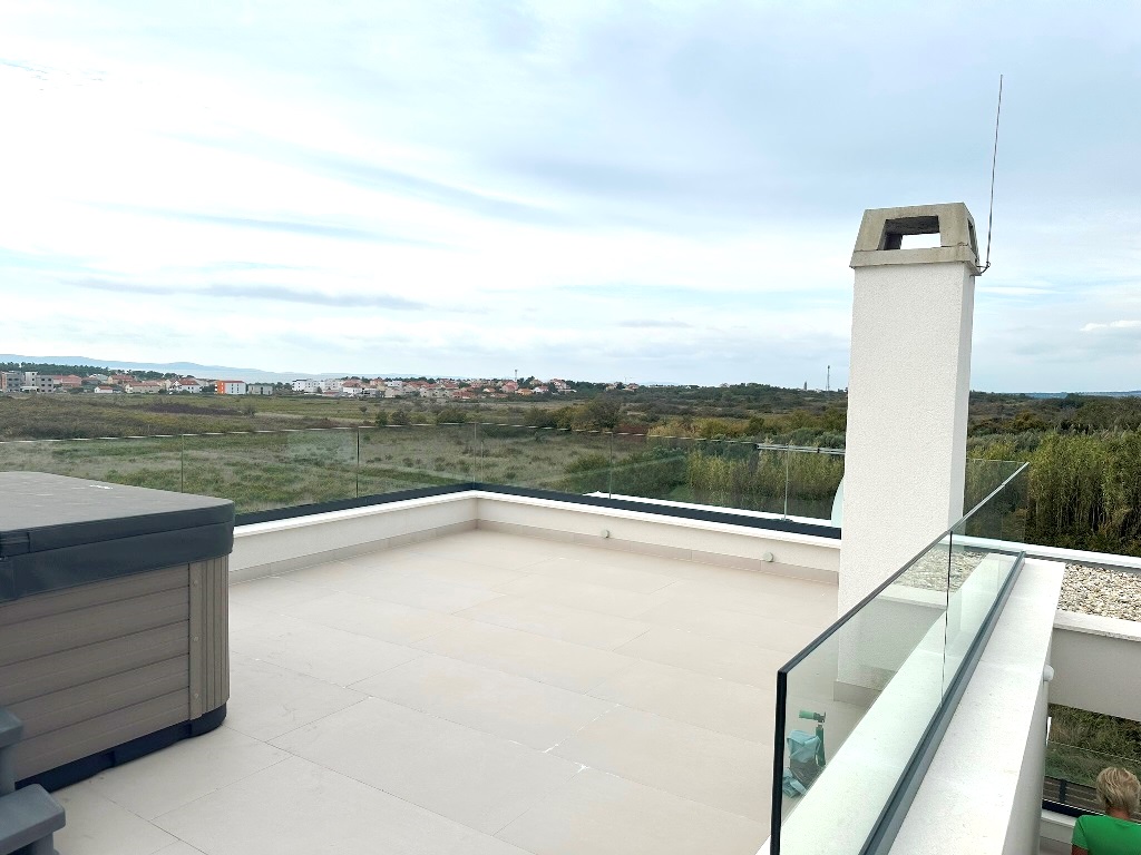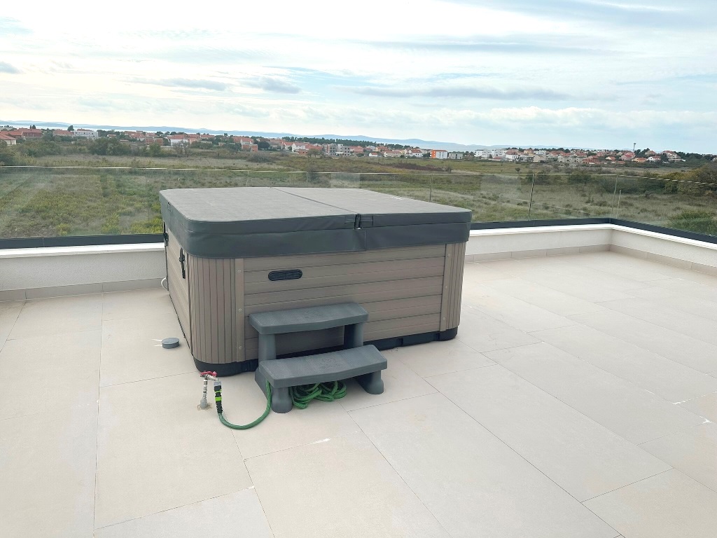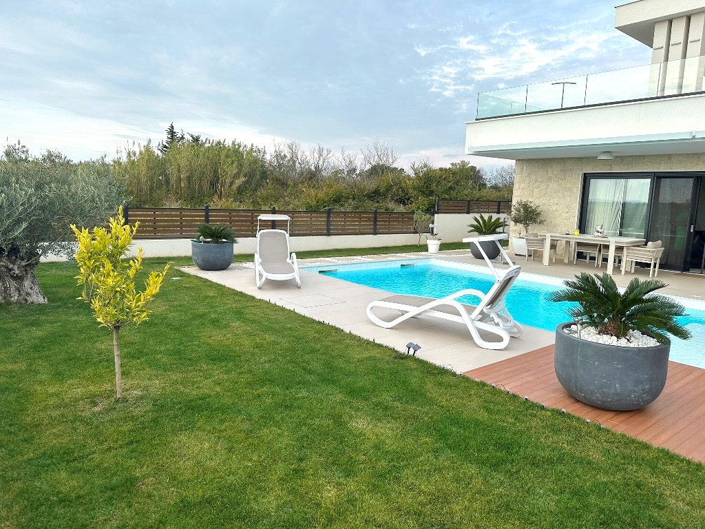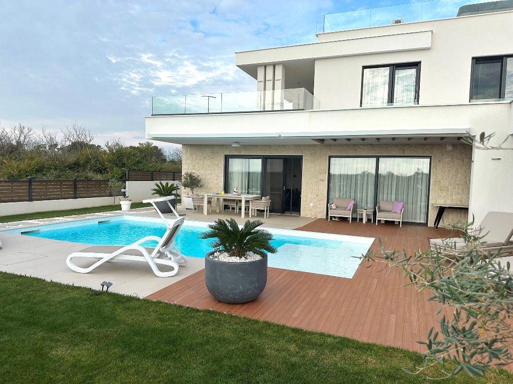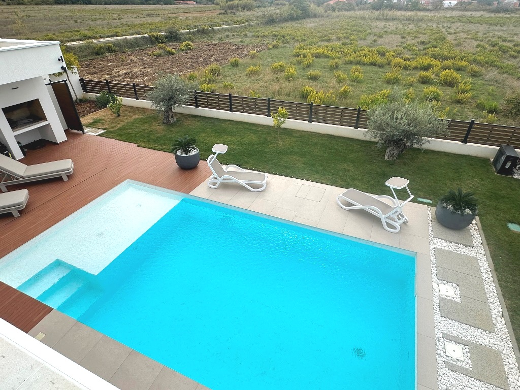 (Hrvatski) Luksuzna kuća katnica sa bazenom, nova i potpuno opremljena! Privlaka, pored Zadra