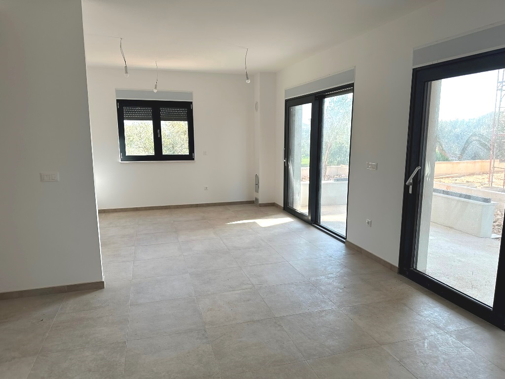 U ponudi aparatman u prizemlju zgrade, odličnog rasporeda a sastoji se od dvije spavaće sobe, kupaonice, kuhinje sa blagovaonicom i boravkom-svi sa izlazom na prostranu terasu (16,5m2) – ukupne neto površine 75,53m2. Apartmanu pripadaju i dva parkirna mjesta te je ukupna prodajna površina ovog apartmana 80,53m2, dok je cijena u fazi izgradnje za ovaj apartman 3.500,00eur/m2. Izvrsna oprema apartmana – podno grijanje u svim prostorijama osim spavaćih soba, hlađanje split sustavom Daikin u svakoj prostoriji, vrhunska talijanska keramika Marazzi, sanitarije renomiranih proizvođača, aluminijska termo stolarija, protuprovalna vrata, kamen na stubištu….