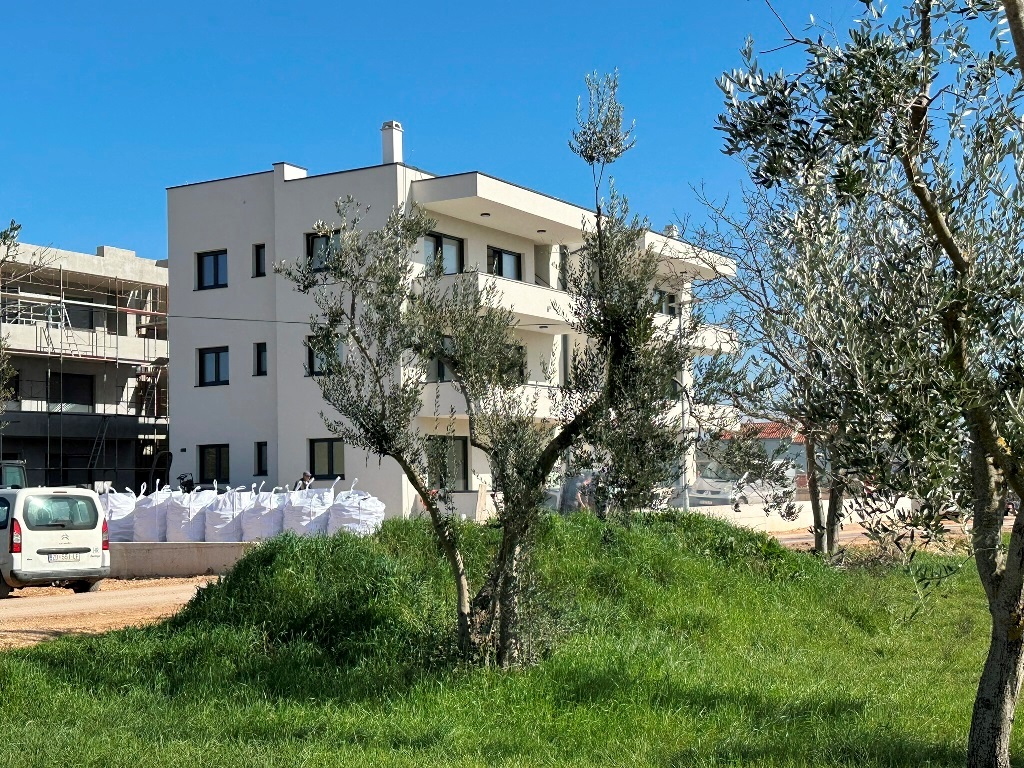 (Hrvatski) Sukošan, ispod magistrale- kvalitetna novogradnja na izvrsnoj i mirnoj lokciji, okruženoj maslenicima i novjim objektima, udaljena svega 200m od mora i plaže. Sukošan je atraktivna turistička destinacija sa mediteranskim ugođajem, pješčanim plažama, velikom ACI marinom, puno turističkih sadržaja sa odličnom domaćom gastronomijom!