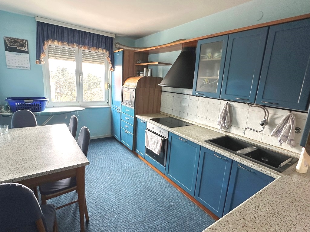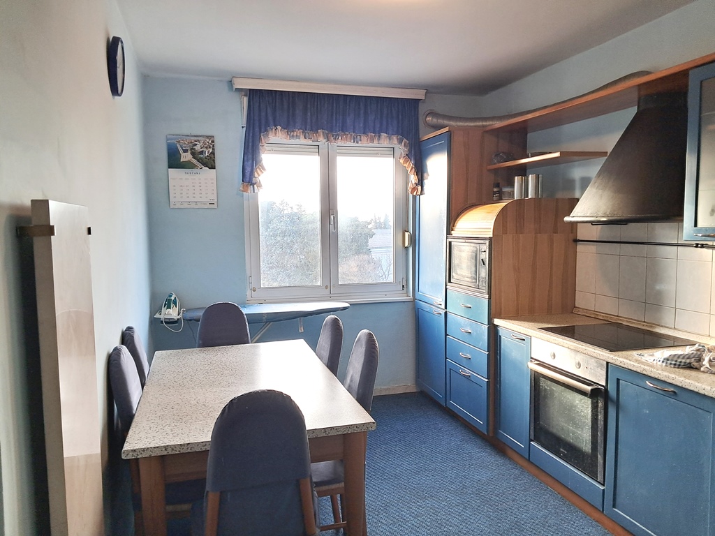 Stan se nalazi u poslovno-stambenoj zgradi, staroj 30-ak godina, u ulici Dr.F.Tuđmana, na 3.katu. Neposredna blizina osnovne škole, vrtića, raznih trgovina, ugostiteljstva….svi sadržaji za ugodan obiteljski život. Odličnog rasporeda prostorija, sa puno dnevne svjetlosti, a sastoji se od tri spavaće sobe, kuhinje sa blagovaonicom, ostave /špajze, odvojenog dnevnog boravka, kupaonice sa tušem i kadom, wc-a za goste, zatvorene lođe (južno orijentirane), spremišta/drvarnice u podrumu zgrade. Stan je održavan, u dobrom stanju, PVC stolarija sa roletama, parketi u sobama i boravku, grijanje na struju (mramorne ploče s tim da ima mogućnost grijanja na drva), privatnost-samo dva stana po katu. Zgrada je održavana, ulaz je uredan, napravljen projekt za lift (čeka se subvencija da se krene sa ugradnjom), omogućen parking u dvorištu zgrade (javni parkig). Mogućnost kupnje garaže u podrumu zgrade površine 15m2. Vlasništvo i dokumentacija uredni!